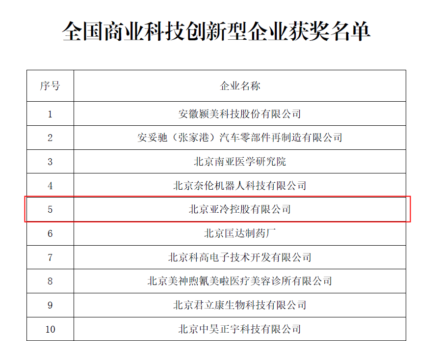 亞冷榮獲“2021年全國(guó)商業(yè)科技創(chuàng)新型企業(yè)”