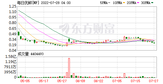 截至目前,每日優鮮2021年財報繼續難產中,27日的股價跌到了0.23美元。